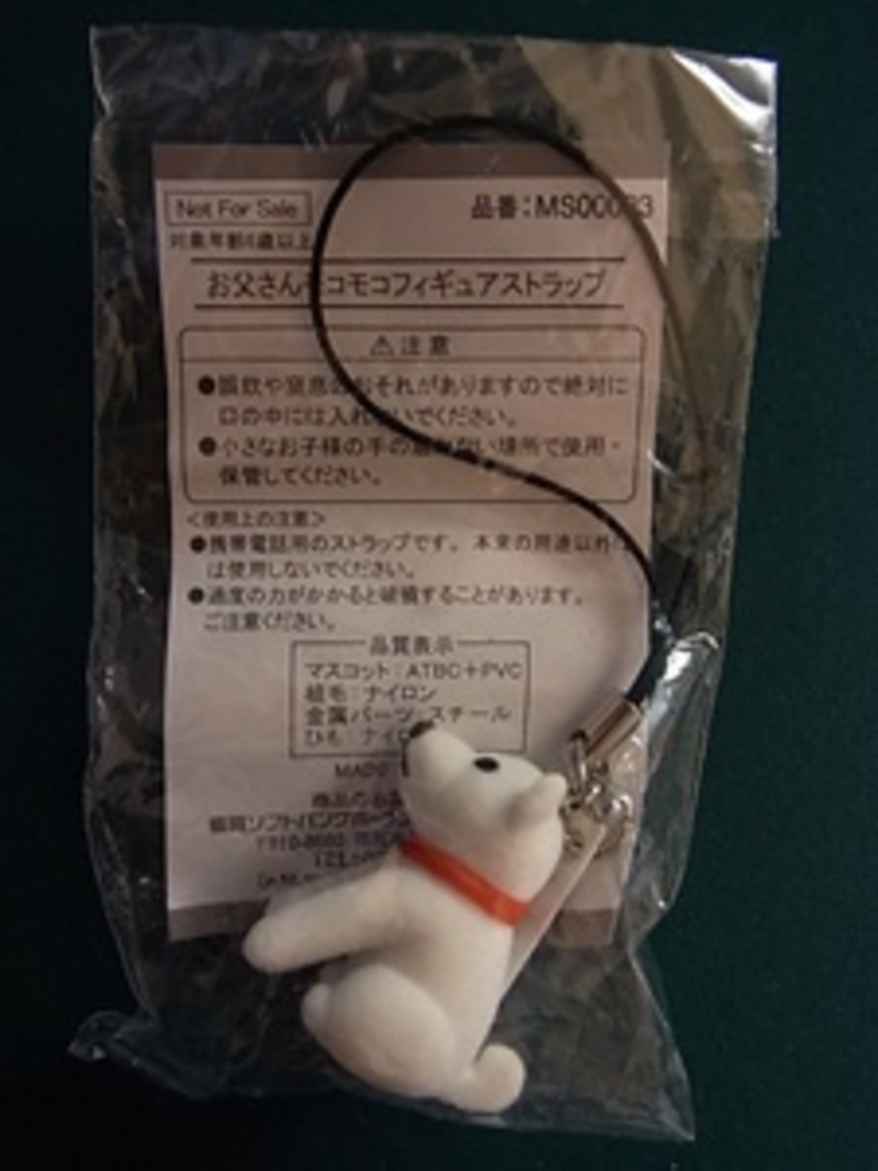ソフトバンクが配布した非売品の携帯電話用ストラップ「お父さんモコモコフィギュアストラップ」。